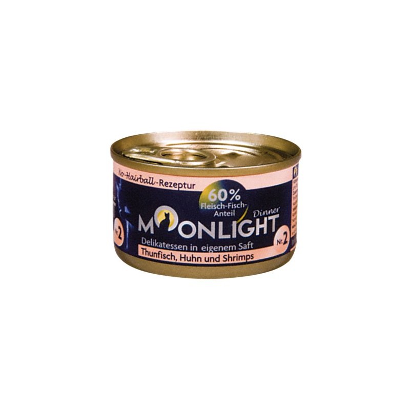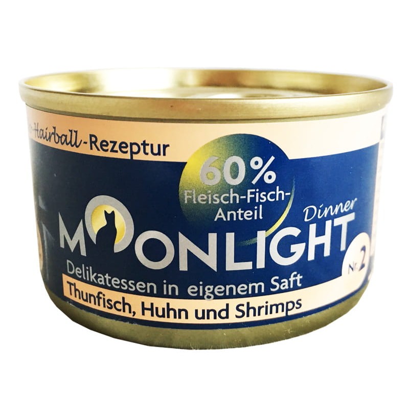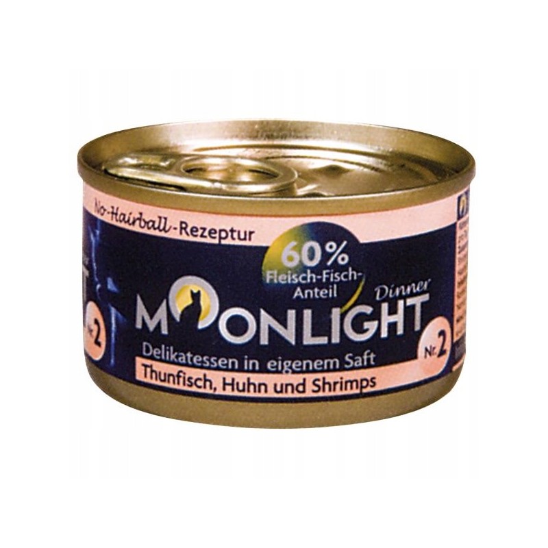 Moonlight 2 tuńczyk + kurczak + krewetki to sprawdzony wybór dla opiekunów, którzy chcą zapewnić swojemu kotu smaczną i zbilansowaną karmę w formie uwielbianej przez większość mruczków. Polecana jako element urozmaiconej diety dorosłych kotów wszystkich ras.