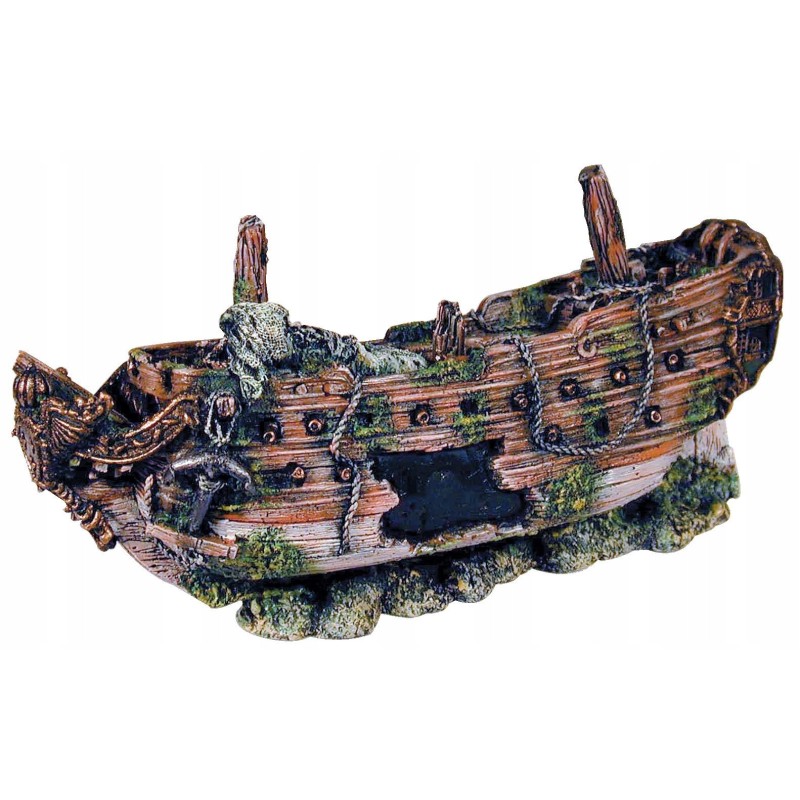Ta dekoracyjna atrapa wraku statku marki Zolux to solidny i efektowny element wystroju, który wprowadzi do Twojego akwarium nutę historii i przygody. Wykonana z bezpiecznego dla ryb i roślin tworzywa sztucznego, ozdoba mierzy 30 centymetrów długości, co czyni ją odpowiednią do zbiorników o pojemności od około 100 litrów wzwyż.
