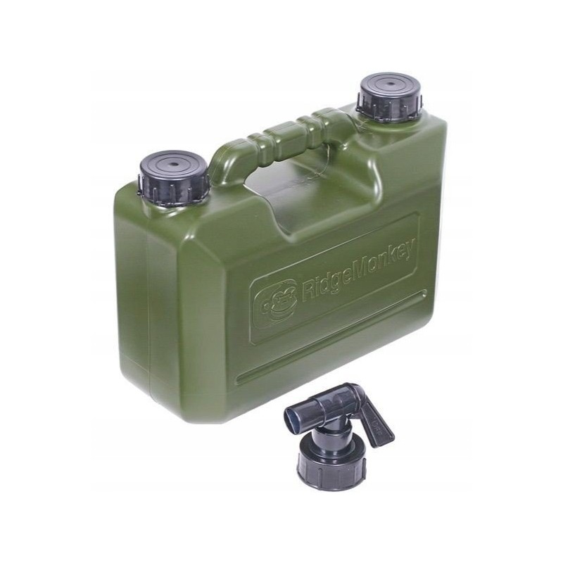 Kanister na wodę pitną firmy RidgeMonkey. Posiada innowacyjne rozwiązanie jakim jest kranik, który znajduje się w zestawie. Dzięki temu łatwiej ustawić strumień wody i można już zapomnieć o porozlewanej wodzie.