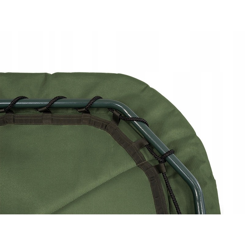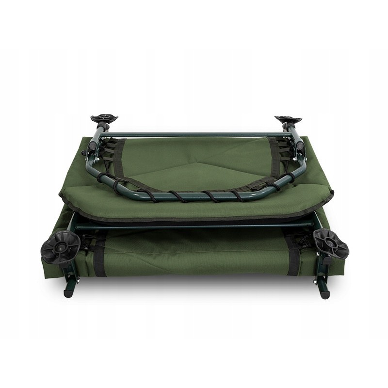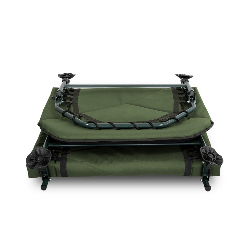 Oparte jest na trwałej i lekkiej konstrukcji, a 8 nóg gwarantuje absolutną stabilność. Dzięki solidnym stopom można dostosować je do każdego terenu. Para nóg pod częścią głowy posiada mechanizm zabezpieczający, który ułatwia rozkładanie łóżka i zapobiega jego odchylaniu się lub przesuwaniu.