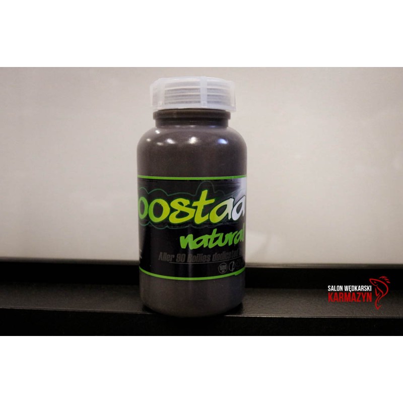 Jest to specjalnie skomponowana zalewa dedykowana do serii kulek Aller 90 Powstała przy współpracy z firmą Aller Aqua. Boosta łączy w sobie moc dipu, boostera i płynnego pokarmu w jednym gęstym płynie. Zawiera rozpuszczony pellet Aller Aqua Best, płynny hydrolizat z łososia, ekstrakt z ryb oceanicznych, ekstrakt z sardeli, syropy i aromaty. Doskonale łączy się z kulkami i tworzy na nich gęstą lepką warstwę, oddającą swoje właściwości wabiące tuż po zetknięciu z wodą. Skuteczna cały rok, przetestowana w każdych warunkach. Nadaje się również do ziaren, pelletów i zanęt. Butelka - 500 ml.