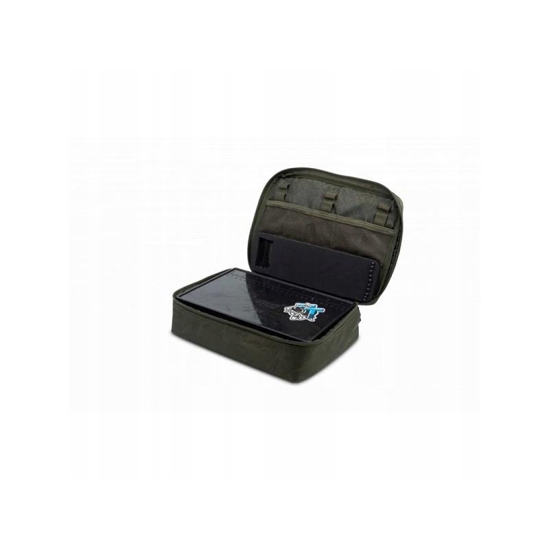Pokrowiec na akcesoria karpiowe, który pomieści pudełko Box Logic Medium Tackle Box. Zapinane na zamek wieko posiada dodatkowa przestrzeń na drobne akcesoria oraz igły a także tablice mieszczącą 10 przyponów. Pokrowiec wykończony w delikatnym kamuflażu.