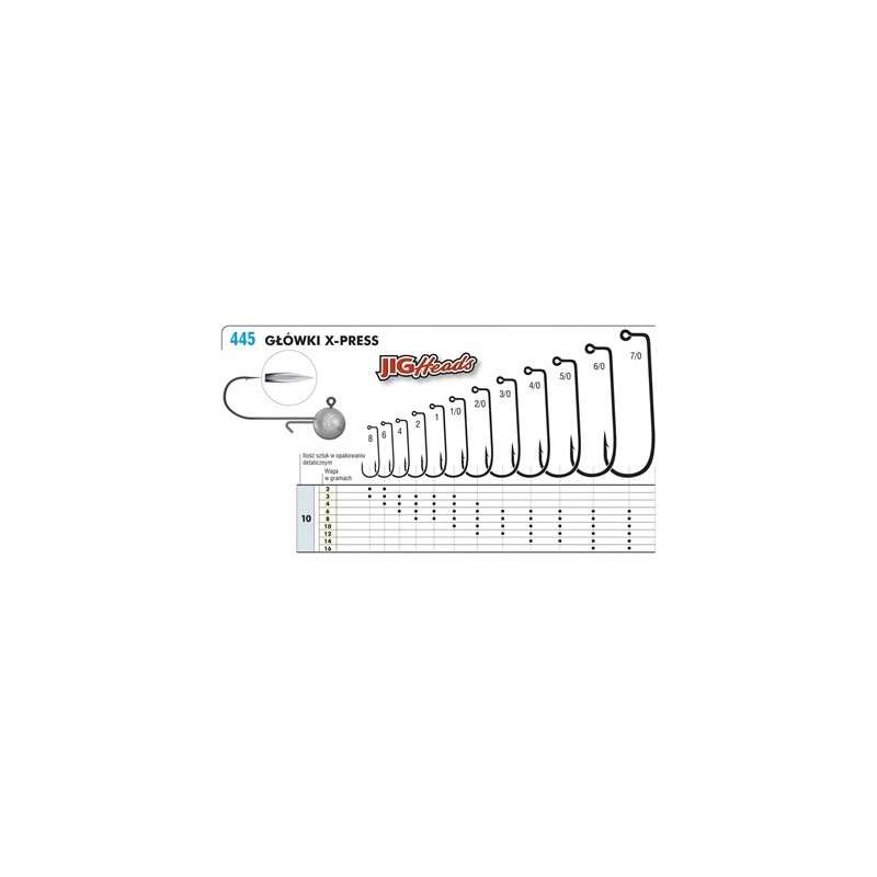 Główki X-Press wykonane zostały na najwyższej jakości, selekcjonowanych hakach Kamatsu. Poddane podwójnemu, specjalnemu procesowi kucia ostrze z łatwością zatnie każdą rybę. Mocowanie gumy na profilowanym druciku pozwala zbroić nią również wąskie, smukłe gumy, bez obawy o rozerwanie przedniej części. Te główki to bezkompromisowa jakość i ostrość, z którą już po pierwszym łowieniu nie będziecie chcieli się rozstać.