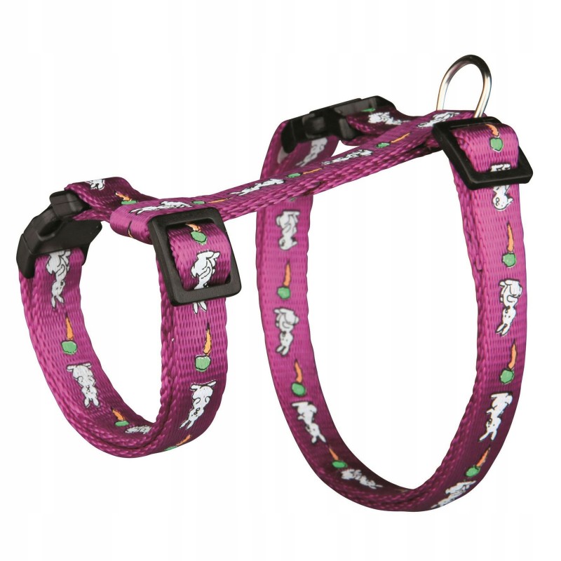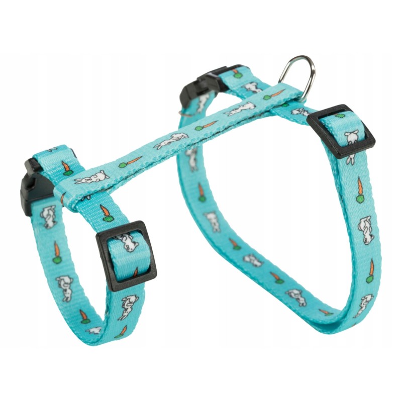 Przed pierwszym użyciem na dłuższym spacerze zaleca się stopniowe oswajanie królika z szelkami w znanym mu, bezpiecznym otoczeniu. Pamiętaj, że szelki i smycz służą wyłącznie do kontrolowanego pilnowania zwierzęcia – nigdy nie pozostawiaj w nich królika bez nadzoru. Produkt przeznaczony jest dla królików miniaturowych i średnich ras; przed zakupem należy zmierzyć obwód klatki piersiowej pupila, aby upewnić się o odpowiednim rozmiarze.