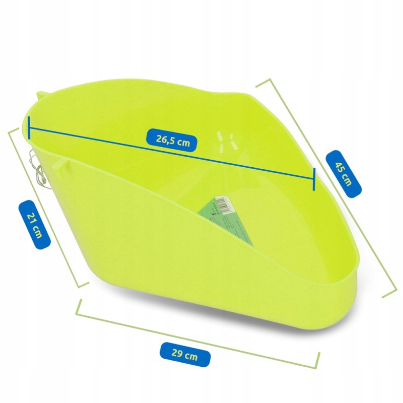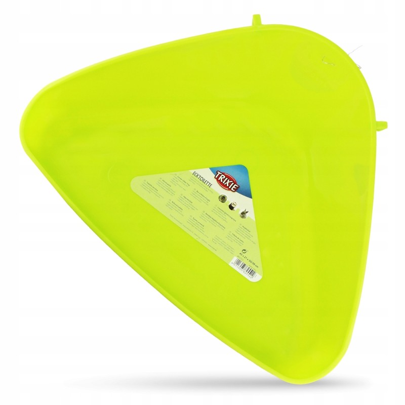 Produkt został wykonany z wytrzymałego, łatwego do czyszczenia plastiku. Wymiary (dł. x szer. x wys.: 45 x 21 x 29 cm) oraz pojemność sprawiają, że jest to model dedykowany do klatek w rozmiarze XL. Toaleta wyposażona jest w wygodny, plastikowy ruszt, który oddziela zwierzę od bezpośredniego kontaktu z odchodami, ułatwiając utrzymanie czystości i suchości sierści. Dzięki temu podłoże lub trociny umieszczone pod rusztem pozostają dłużej suche, a sama toaleta jest bardziej wydajna.