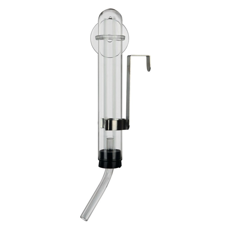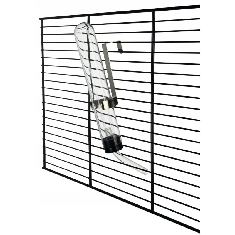Produkt wyposażony jest w praktyczny metalowy uchwyt z zawieszką, który pozwala na stabilne zamocowanie poidła na prętach klatki lub ściance terrarium. Ważne jest, aby montować je na odpowiedniej wysokości – tak, aby zwierzę bez problemu sięgało do końcówki, ale nie musiało nadmiernie wyginać grzbietu.