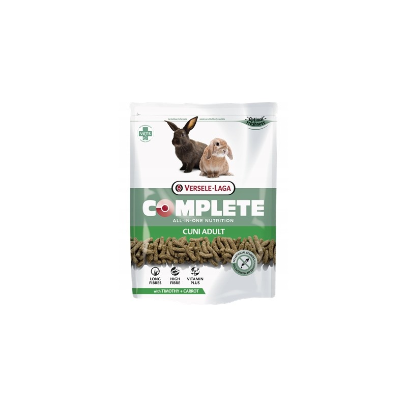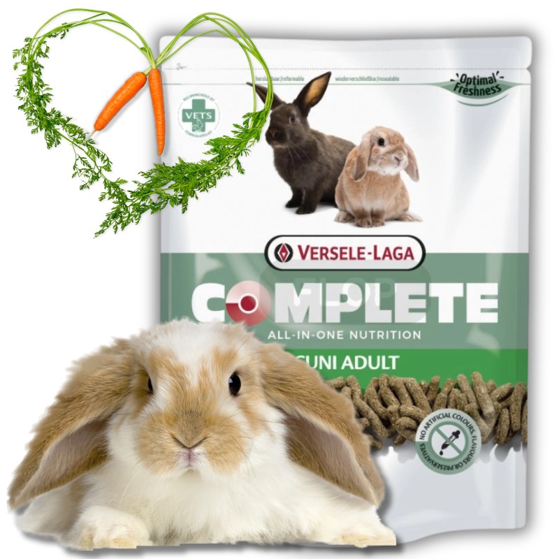 Karma Cuni Adult Complete od Versele-Laga to pełnoporcjowe pożywienie stworzone specjalnie dla dorosłych królików miniaturowych, powyżej 6. miesiąca życia. Jej zbilansowana formuła dostarcza wszystkich niezbędnych składników odżywczych, wspierając zdrowie i witalność Twojego pupila przez cały dzień.