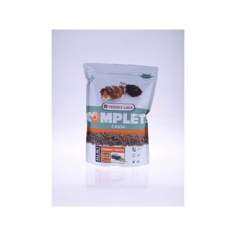 Karma Cavia Complete od Versele-Laga charakteryzuje się wysoką zawartością włókna surowego, które jest kluczowe dla prawidłowego funkcjonowania delikatnego układu pokarmowego świnki morskiej. Zawiera stabilną formę witaminy C, ponieważ – w przeciwieństwie do większości zwierząt – świnki morskie nie syntetyzują jej same i muszą otrzymywać ją wraz z pożywieniem. Niedobór tej witaminy prowadzi do poważnych problemów zdrowotnych, takich jak szkorbut.