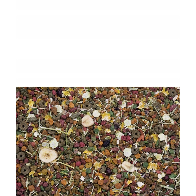Formuła została wzbogacona o niezbędne witaminy (w tym A, D3, E) oraz minerały, takie jak wapń i fosfor w odpowiedniej proporcji, co wspomaga zdrowie kości i zębów. Dodatek prebiotyków (FOS – fruktooligosacharydów) pozytywnie wpływa na florę bakteryjną jelit, wspierając trawienie i przyswajanie składników odżywczych. Karma nie zawiera dodatku cukru, co jest kluczowe w profilaktyce problemów zdrowotnych u szynszyli.