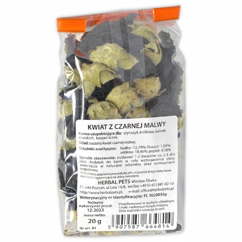 Dzięki swoim łagodnym właściwościom, kwiat czarnej malwy stanowi dobry wybór dla opiekunów szukających naturalnych metod wspierania dobrostanu swoich zwierząt. Można go podawać samodzielnie jako smakołyk lub po zaparzeniu – ostudzony napar można dodać do picia lub karmy.