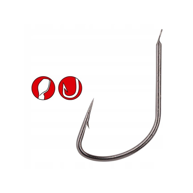 Najwyższej jakości japońskie haki światowego lidera w produkcji haczyków wędkarskich. Wykonane z wysoko węglowej stali. Model 1010 został opracowany do połowu płoci i innych drobnych ryb na zawodach i w trakcie łowienia rekreacyjnego. Posiada długi trzonek z łopatką, co bardzo przydaje się podczas łowienia drobnych ryb typu płotki i ukleje. Pewnie trzyma rybkę i umożliwia szybkie i łatwe jej odczepienie. Stosowany głównie w metodach spławikowych. Japońskie haki które cechuje najwyższa jakość.