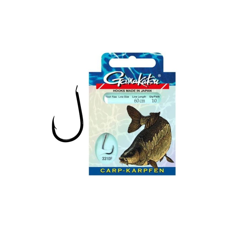 Haczyk LS-3310 w kolorze czarnym idealny do łowienia na robaki, duże ziarna i inne naturalne przynęty z łopatką, zadziorem i odgiętym ostrzem. Haczyk wzmocniony, kuty wykonany z wysokowęglowej stali, specjalnie ostrzony długo się nie tępi. Zawiązane na legendarnej lince Gamakatsu G-Line, przeznaczone do klasycznego łowienia karpi, linów, karasi,