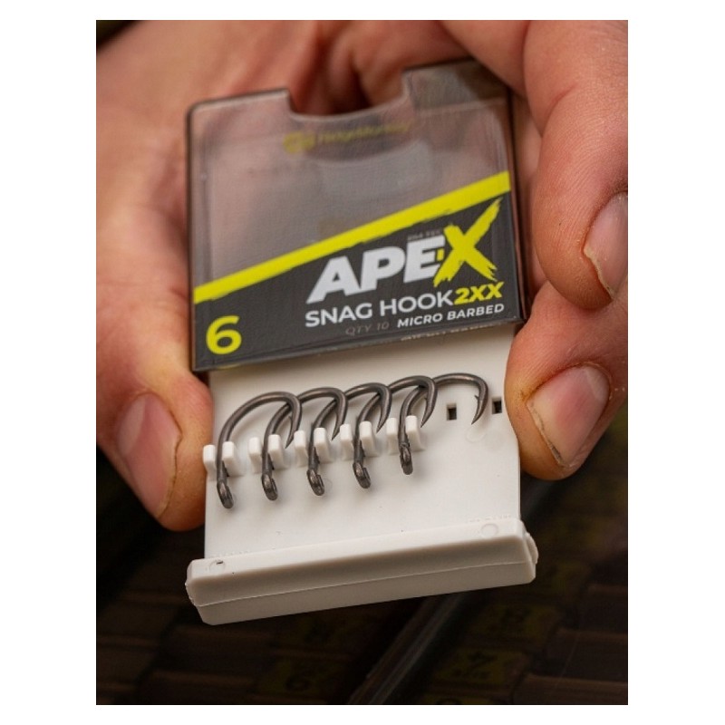 Hak do zadań specjalnych, wykonany z niezwykle mocnego, grubego drutu, który jest stworzony do łowienia w najtwardszych zaczepach. Dzięki dużemu doświadczeniu w tworzeniu wysokiej jakości haczyków, które intensywnie testowane były przez dwa lata zarówno na ogromnych karpiach jak i niesamowicie silnych jesiotrach, postanowiliśmy w końcu ukazać serię Ape-X światu! Do ich stworzenia wykorzystano najnowszą technologię, dzięki czemu są niezwykle ostre i wytrzymałe na ekstremalne przeciążenia.