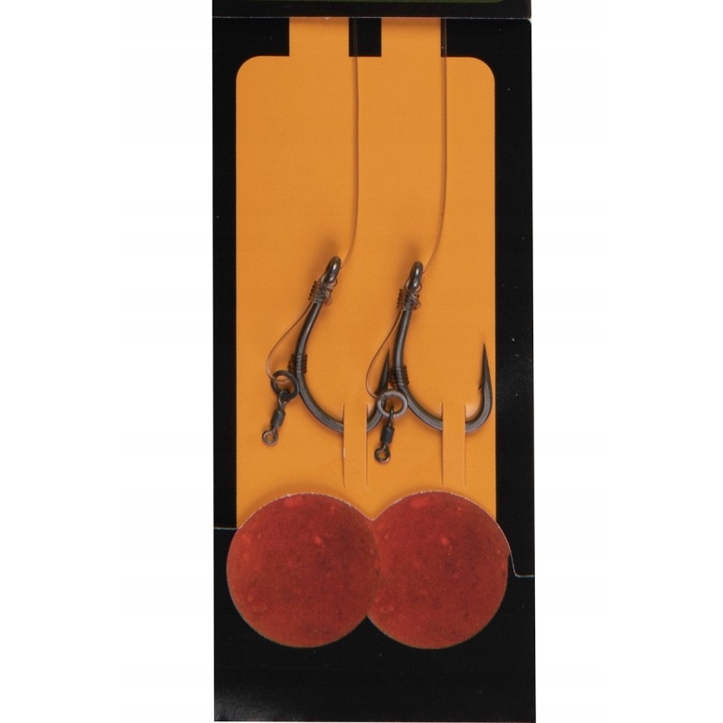 Gotowe przypony karpiowe D-Rig, których budowa jest stworzona do stosowania z przynętami tonącymi oraz wafters na czystym, żwirowym lub piaszczystym dnie. Wykonane na podstawie haka Edges Arma Point Curve Short oraz fluorocarbonu Trans Khaki Illusion Fluorocarbon. Przynęta w tym przyponie mocowana jest do mini krętlika zamocowanego na pętli D. Najlepiej mocować kulkę za pomocą nici Bait Floss. W zestawie z przyponem znajdują się krętliki z szybkozłączem oraz koszulki antysplątaniowe.