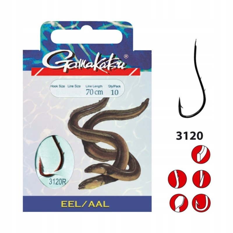 Gamakatsu Haki z Przyponem Węgorz 3120R r.6/0.28mm/70cm