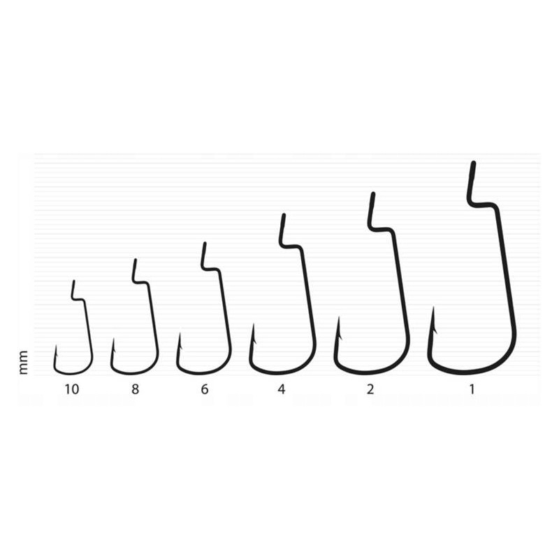 Paczka zawiera 5 sztuk haczyków w rozmiarze 6, co jest uniwersalnym rozmiarem, sprawdzającym się przy poławianiu okoni, sandaczy, a nawet mniejszych szczupaków. Główne cechy tego produktu to: