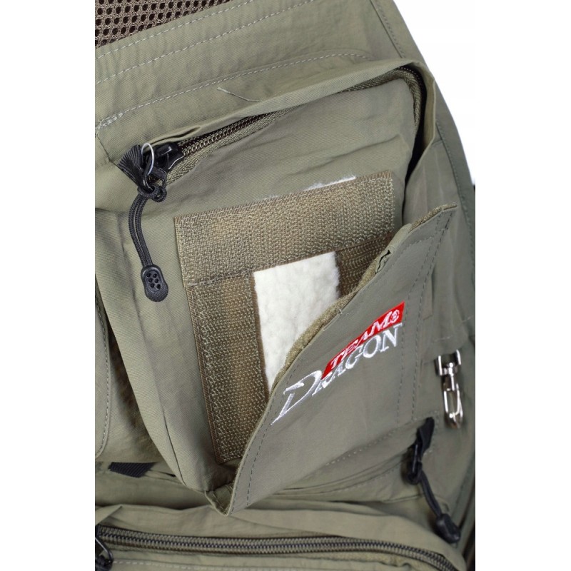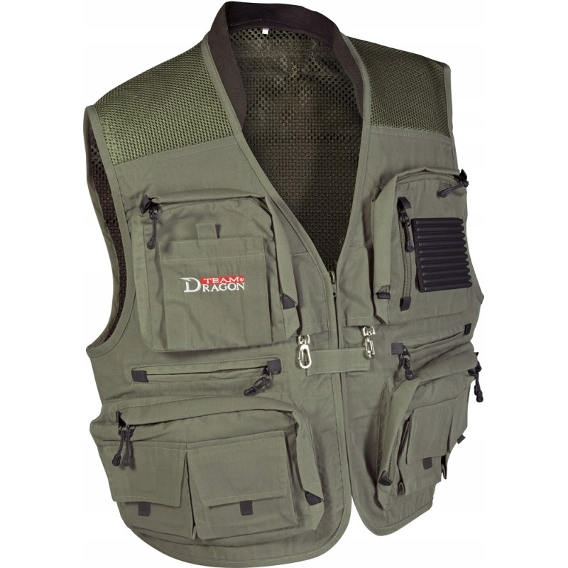 Doskonałej jakości kamizelka wędkarska Team Dragon KA-04. Wyposażona w dużą liczbę kieszeni, bo aż 13. Dzięki temu zabierzesz ze sobą sporą ilość pudełek, mniejszych i większych, z przynętami i innymi akcesoriami, narzędzi, przyponów i innych przyborów wędkarskich.