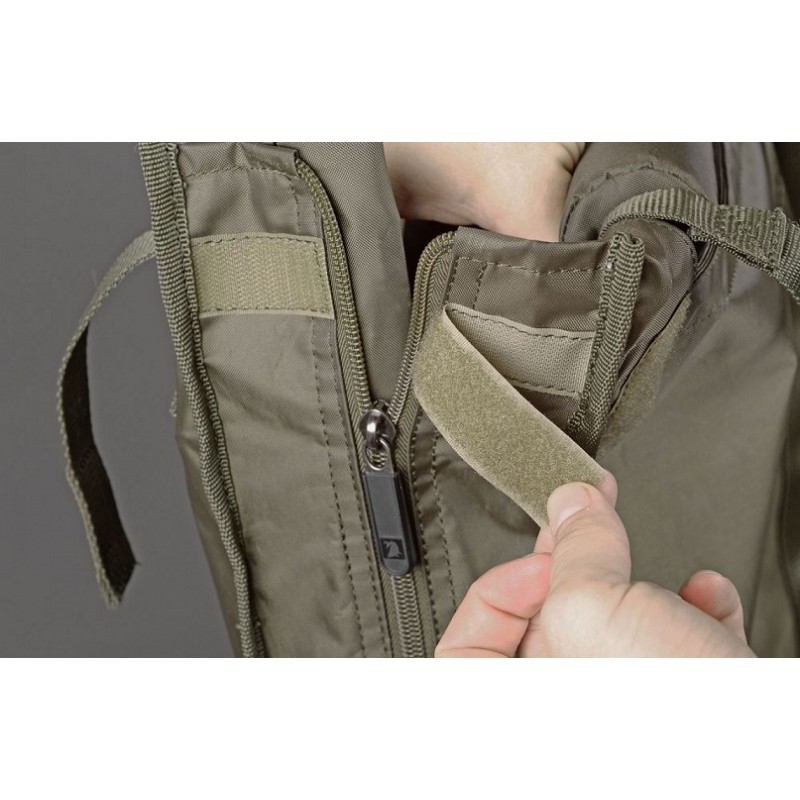 Wytrzymały worek do ważenia i przechowywania ryb. Wyposażony w długi pasek z metalową zapinką w kształcie litery D ułatwiające ważenie oraz cztery boczne uchwyty pozwalające na bezpieczne przenoszenie ryby. Dolna cześć worka wykonana jest z bezpiecznej dla ciała siatki. Siatka pozwala w szybkim tempie pozbyć się nadmiaru wody z wnętrza worka. Boki worka posiadają mocne zamki, które można łatwo zabezpieczyć dzięki rzepom.