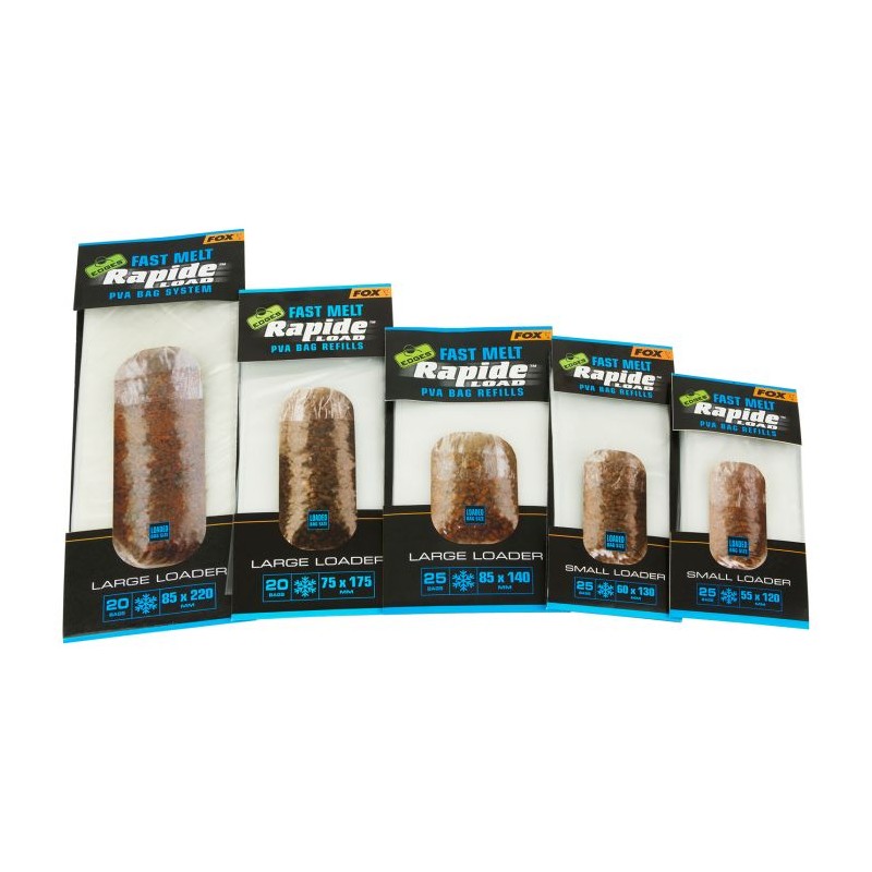 Szybko rozpuszczalne woreczki rozpuszczalne PVA. Można ich używać zarówno samodzielnie jak i w systemie FOX Rapid Load PVA Bag System Kit - jest to bardzo pomysłowy system do robienia pakietów z woreczków PVA. Zestaw wystarczy kupić raz - później dokupuje się tylko woreczki PVA. Tylko dobrze wykonany woreczek pozwoli nam na osiągniecie dalekich i celnych rzutów bez ryzyka splątania się zestawu.
