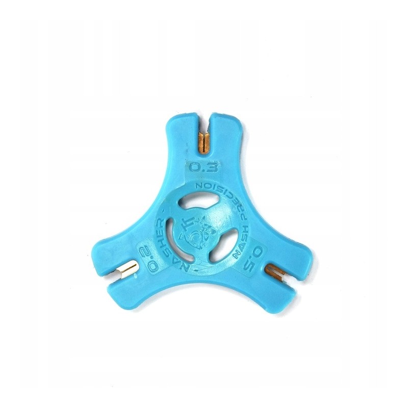 Trzy szczeliny o różnych rozmiarach 0.2, 0.3 i 0.5mm dla dopasowania do różnych grubości materiałów.