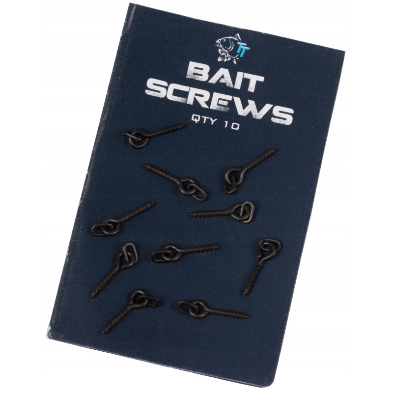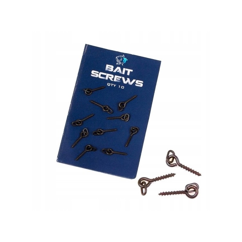 Pierścień połączony przegubowo z wkrętem przeznaczony do wszystkich możliwych przynęt. Wykorzystując Bait Screws przynęta swobodnie porusza się po trzonku haczyka tym samym ułatwiając zapięcie ryby. We wkrętkach 8mm zastosowano pierścień owalny a w 21mm pierścień okrągły. Całość została wykonana z metalu w czarnym matowym kolorze.