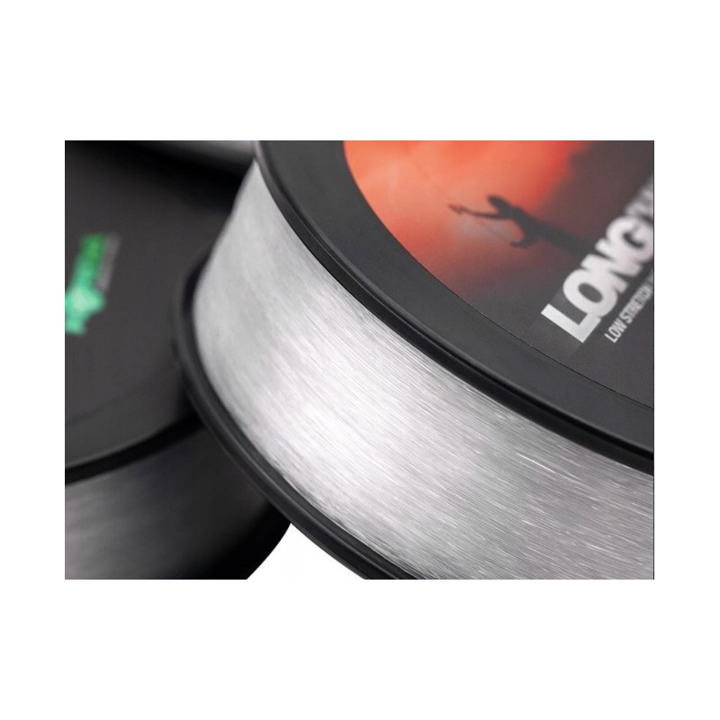 Nowa żyłka główna Long Chuck została zaprojektowana specjalnie do łowienia na długich dystansach i z pewnością doda kilka metrów więcej do Twojego rzutu w porównaniu do standardowej żyłki. Ma bardzo niską rozciągliwość, aby umożliwić szybszą kompresję blanku wędziska, a oprócz tego, że ma bardzo niską absorpcję wody co pomaga również wyczuć prowadzenie ciężarka na dystansie lub przy bocznym wietrze. Niska absorpcja wody zapewnia również, że żyłka jest lekka i pozostaje w powietrzu przez dłuższy czas, pomagając w ten sposób obniżyć opór na ciężarku podczas lotu. Jednak najważniejszym czynnikiem w osiągnięciu dalszych dystansów jest fakt, że ta linka jest przezroczysta – dodanie barwnika do żyłki mono zwiększa jej wagę, a także zmienia strukturę molekularną i tworzy większą rozciągliwość, co oznacza, że kolorowe linki nie będą rzucać tak daleko.