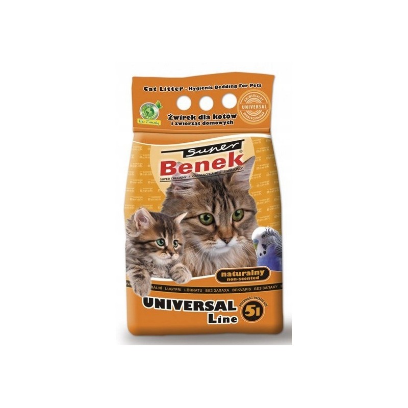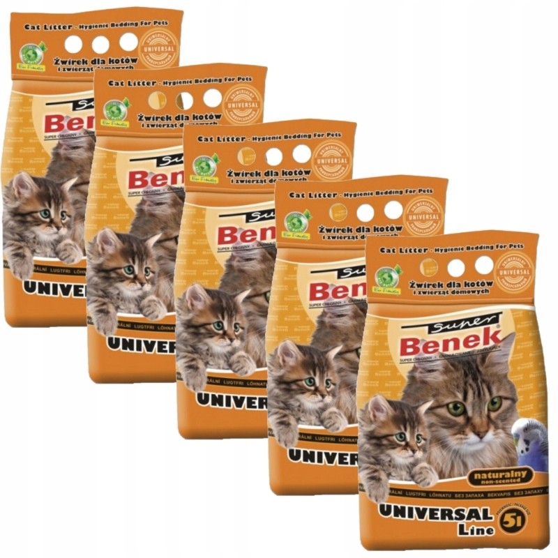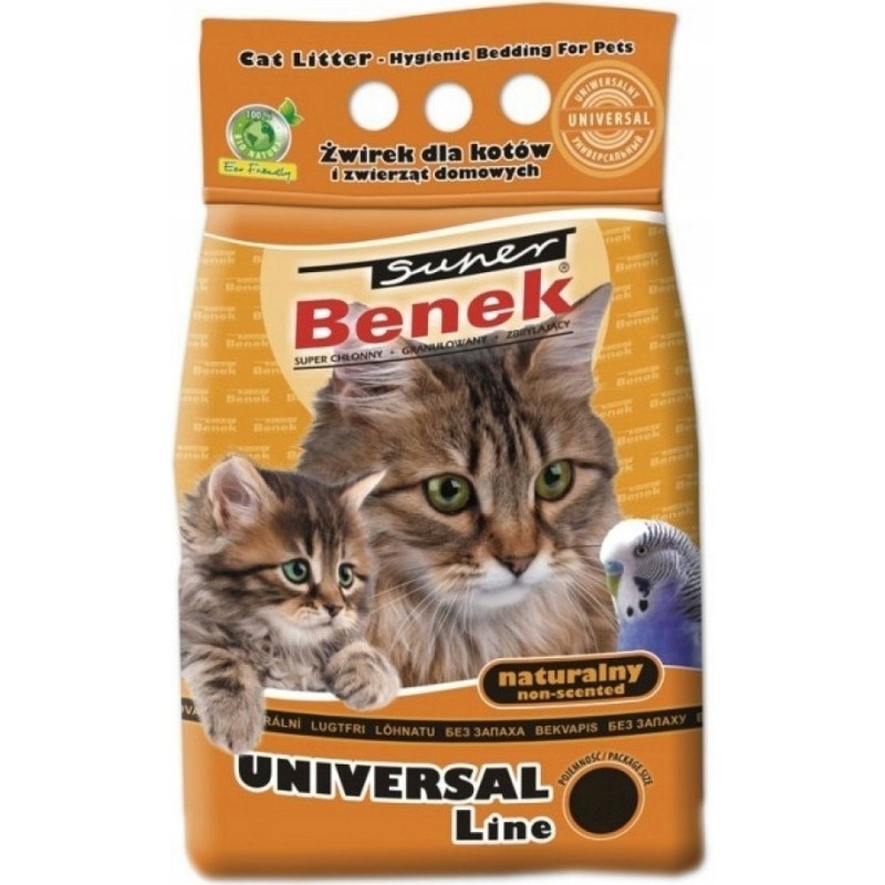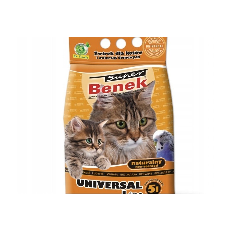 Super Benek uniwersalny naturalny to sprawdzone, proste i funkcjonalne rozwiązanie dla każdego opiekuna kota, który poszukuje skutecznego, naturalnego i niedrogiego żwirku bentonitowego. Opakowanie 5 litrów zapewnia zapas na dłuższy czas, gwarantując higienę i świeżość w kociej toalecie.