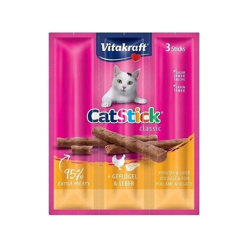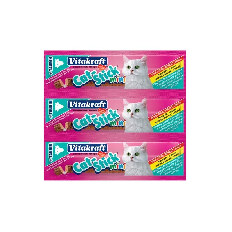 Cat Stick Vitakraft to smaczny dodatek do zbilansowanej diety. Pamiętaj, że smakołyki nie mogą zastąpić pełnowartościowego posiłku i powinny być podawane z umiarem, zgodnie z zaleceniami producenta umieszczonymi na opakowaniu. Produkt nadaje się dla kotów dorosłych.