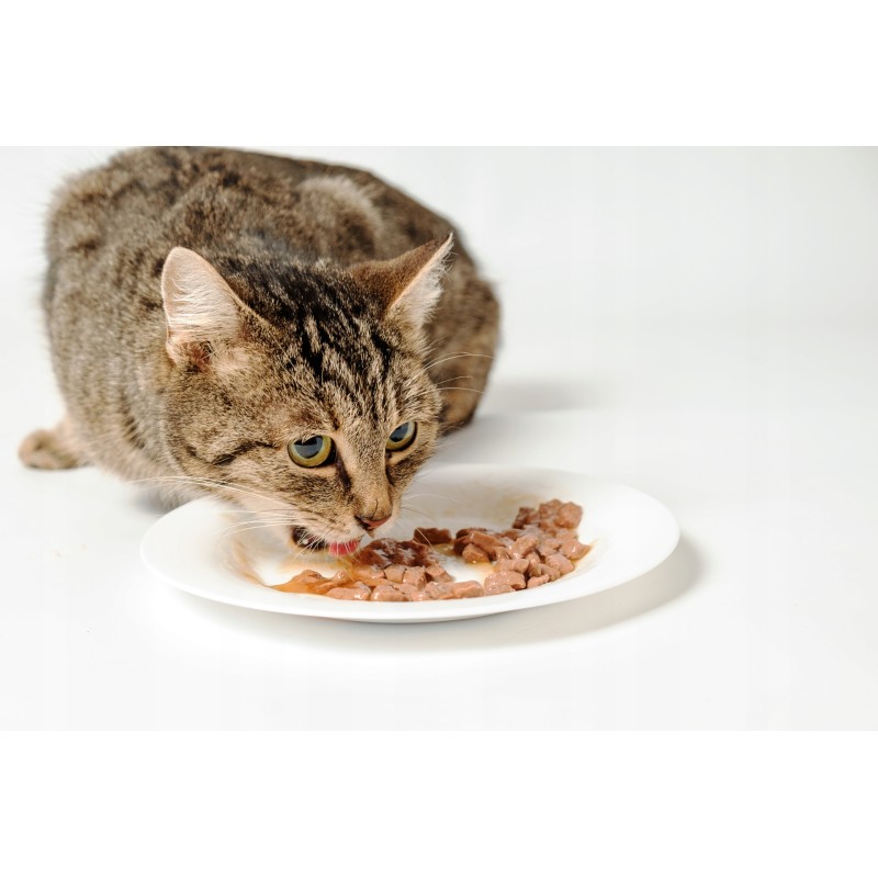 Porcja 85g w wygodnej, jednorazowej puszce idealnie sprawdza się jako samodzielny posiłek lub urozmaicenie suchej diety. Pamiętaj, że sucha karma dla kotów sterylizowanych powinna stanowić podstawę żywienia, a mokre posiłki są jej wartościowym uzupełnieniem, zwiększając dzienną podaż płynów. Produkt pełnoporcjowy, zgodny z wymaganiami żywieniowymi dla kotów.