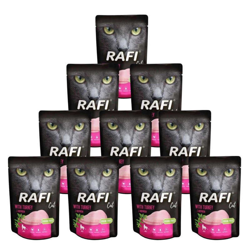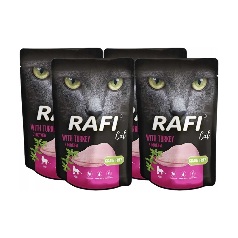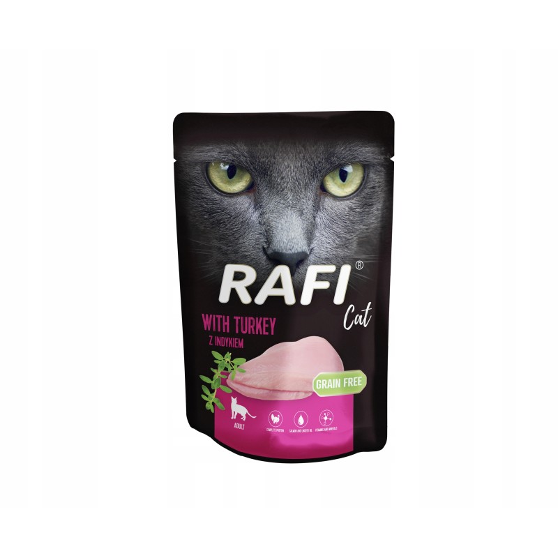 Ten pasztet dla kota marki Rafi, z linii Dolina Noteci, to kompletna i zbilansowana karma mokra w formie miękkiej, jednolitej masy. Głównym źródłem białka jest tu indyk, który zapewnia smakowitość i jest często chętnie wybierany przez koty. Produkt przeznaczony jest dla dorosłych osobników wszystkich ras.