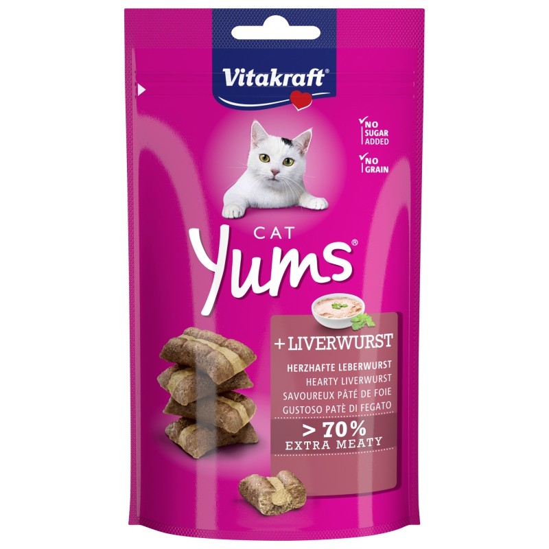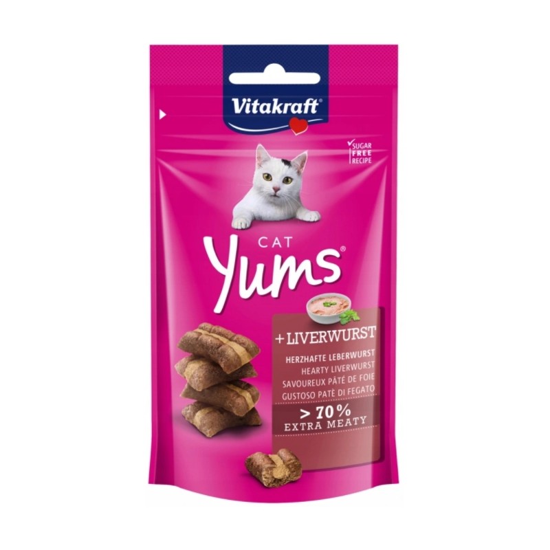 Cat YUMS z wątróbką marki VITAKRAFT to miękkie przysmaki funkcjonalne, stworzone z myślą o zaspokojeniu naturalnych potrzeb żywieniowych oraz instynktu łowieckiego kota. Smakowita, delikatna konsystencja i intensywny aromat wątróbki czynią je niezwykle atrakcyjnymi nawet dla najbardziej wybrednych mruczków.