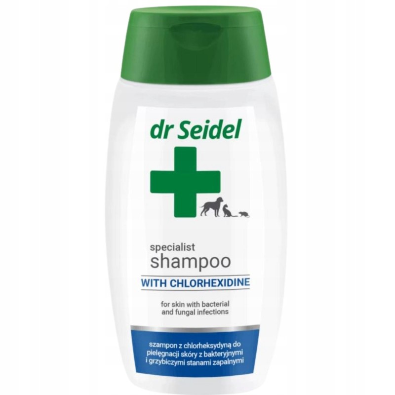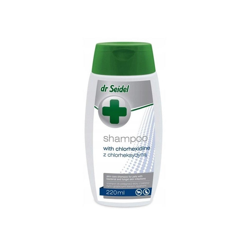 Szampon DR SEIDL z chlorheksydyną to profesjonalny preparat do pielęgnacji skóry psów i kotów, przeznaczony do stosowania w przypadku problemów dermatologicznych. Jego głównym, aktywnym składnikiem jest chlorheksydyna – substancja o udowodnionym, szerokim spektrum działania przeciwdrobnoustrojowego.