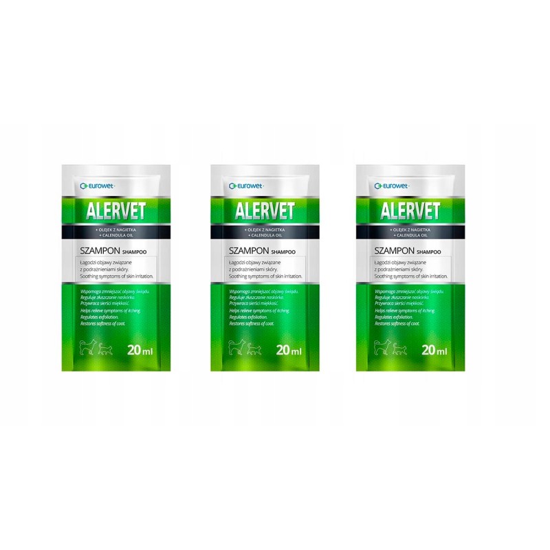 Szampon leczniczy Eurowet Alervet w praktycznej saszetce 20 ml to specjalistyczny preparat przeznaczony do pielęgnacji skóry psów i kotów wykazujących objawy alergii, świądu i podrażnień. Jego formuła została opracowana, aby delikatnie, a jednocześnie skutecznie oczyszczać skórę i sierść, przynosząc ulgę zwierzęciu.