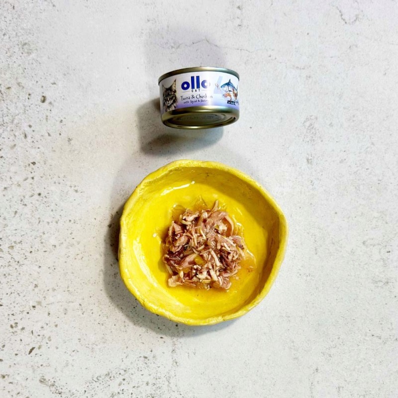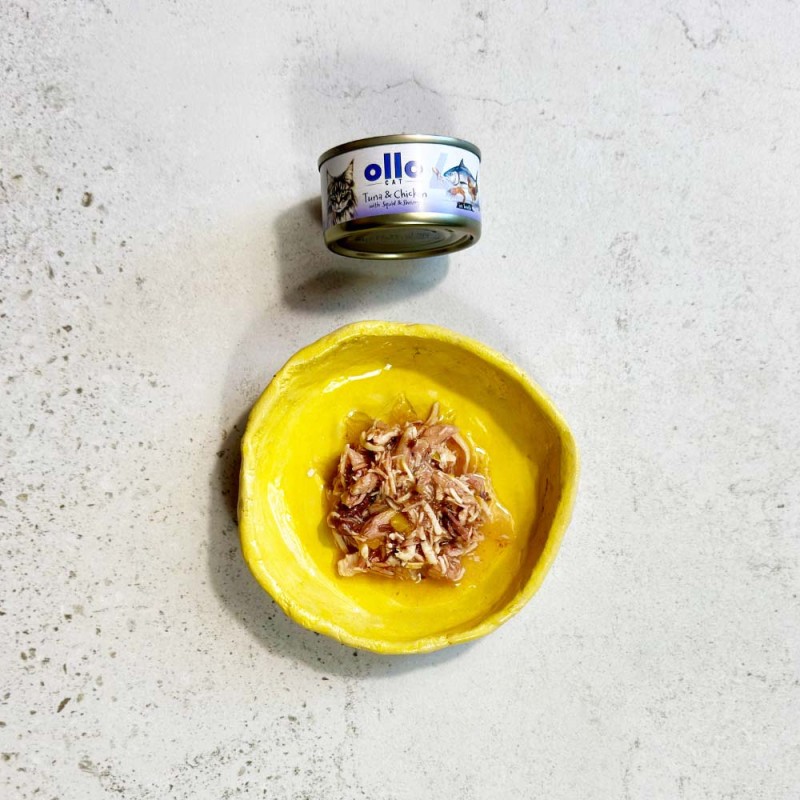 OLLO CAT nr 4 kurczak-kalmar to kompletna, mokra karma dla kotów w formie mięsnego pasztetu, zamknięta w poręcznej puszce o wadze 70 gramów. Receptura opiera się na delikatnym mięsie z kurczaka i owocach morza, co zapewnia wysoką smakowitość i może być atrakcyjną propozycją nawet dla wybrednych zwierząt.