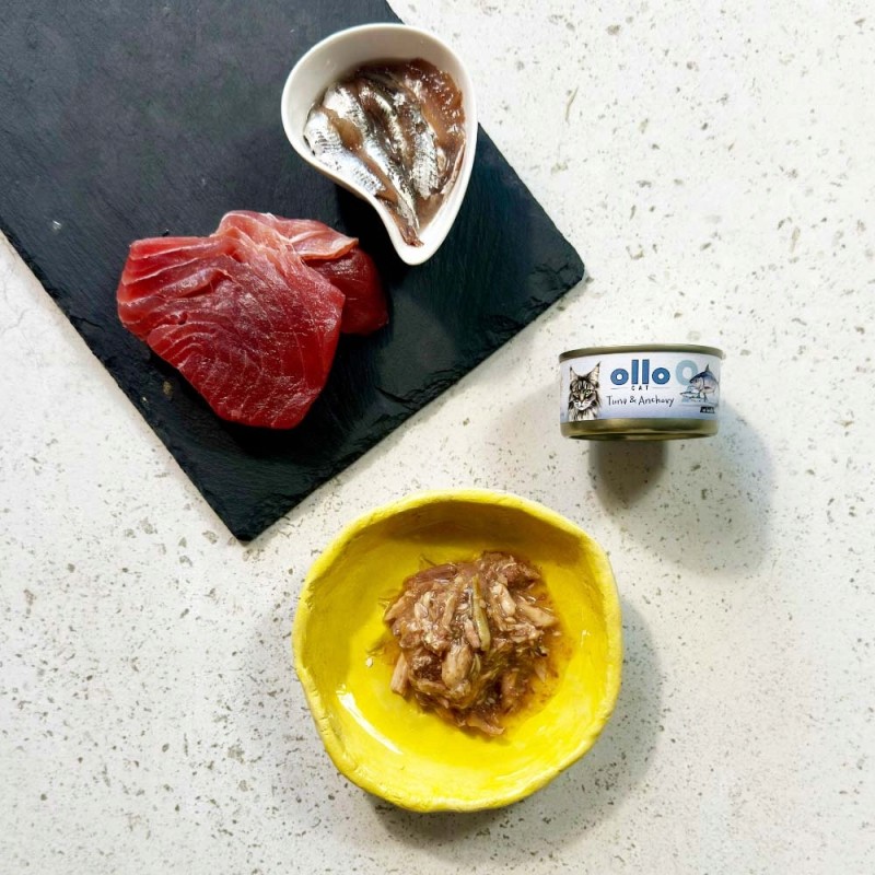 Ta puszka OLLO CAT nr 9 to kompletna, mokra karma dla kotów dorosłych, bazująca na tuńczyku z dodatkiem anchovis. Jej receptura została opracowana tak, aby zaspokoić naturalne potrzeby żywieniowe mięsożernych kotów.