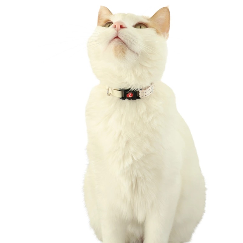 Obroża została wykonana z wytrzymałego i lekkiego materiału, zapewniającego komfort podczas codziennego noszenia. Jest wyposażona w praktyczne zapięcie typu "break-away" (zrywane), które jest kluczowym elementem bezpieczeństwa. W przypadku zaczepienia się kota o gałąź czy inny przedmiot, zapięcie automatycznie się rozłączy, minimalizując ryzyko uduszenia lub poważnego urazu.