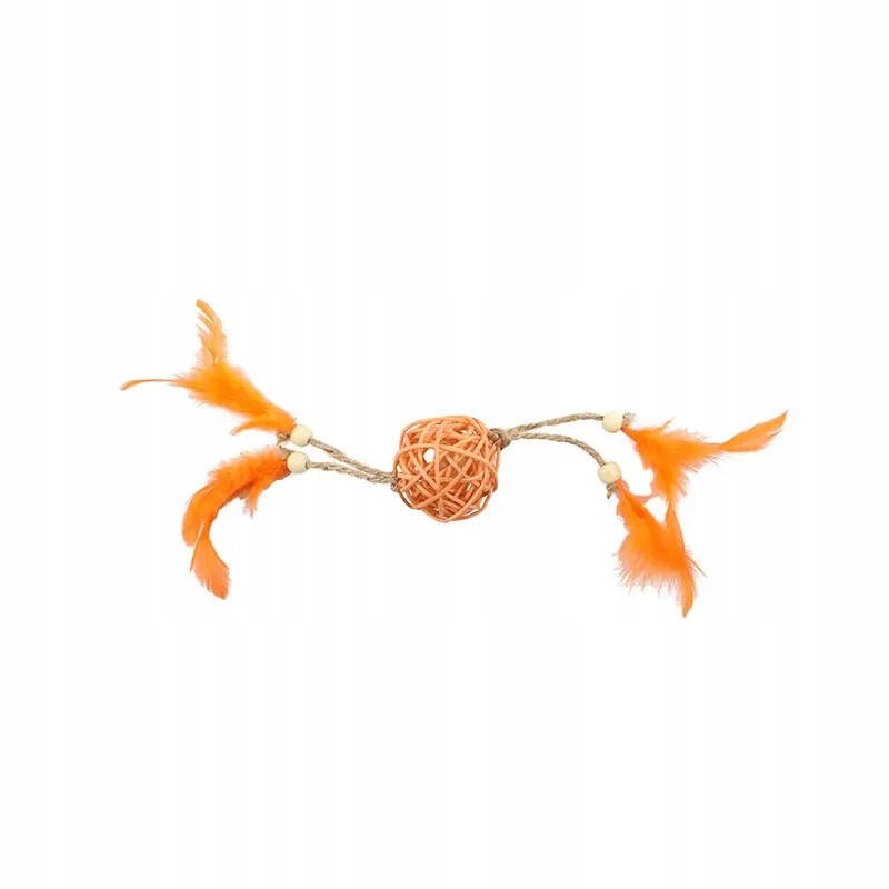 Ta pomarańczowa kulka z wikliny i piór to klasyczna, wielofunkcyjna zabawka dla kota, która łączy prostotę z efektywnością. Jej lekka, ażurowa konstrukcja zachęca do podrzucania, toczenia i podgryzania, zapewniając rozrywkę nawet podczas samotnej zabawy.