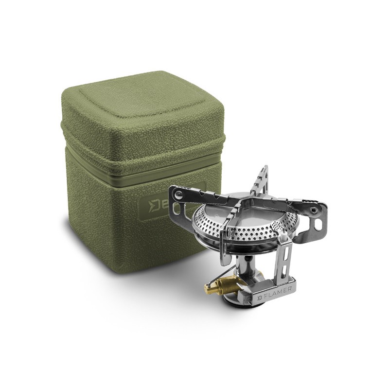 Delphin FLAMER to kuchenka gazowa, charakteryzująca się kompaktowością, łatwością przechowywania i wysoką wydajnością. Idealna na pobyt nad wodą, piesze wycieczki, biwaki lub inne aktywności na świeżym powietrzu. Dzięki swoim wymiarom i niewielkiej wadze (180g) może być bez problemu zabierana zawsze i wszędzie, gdzie istnieje potrzeba aby łatwo podgrzać lub przygotować jedzenie.