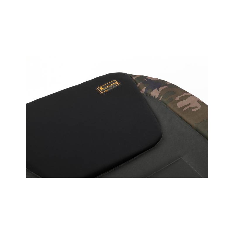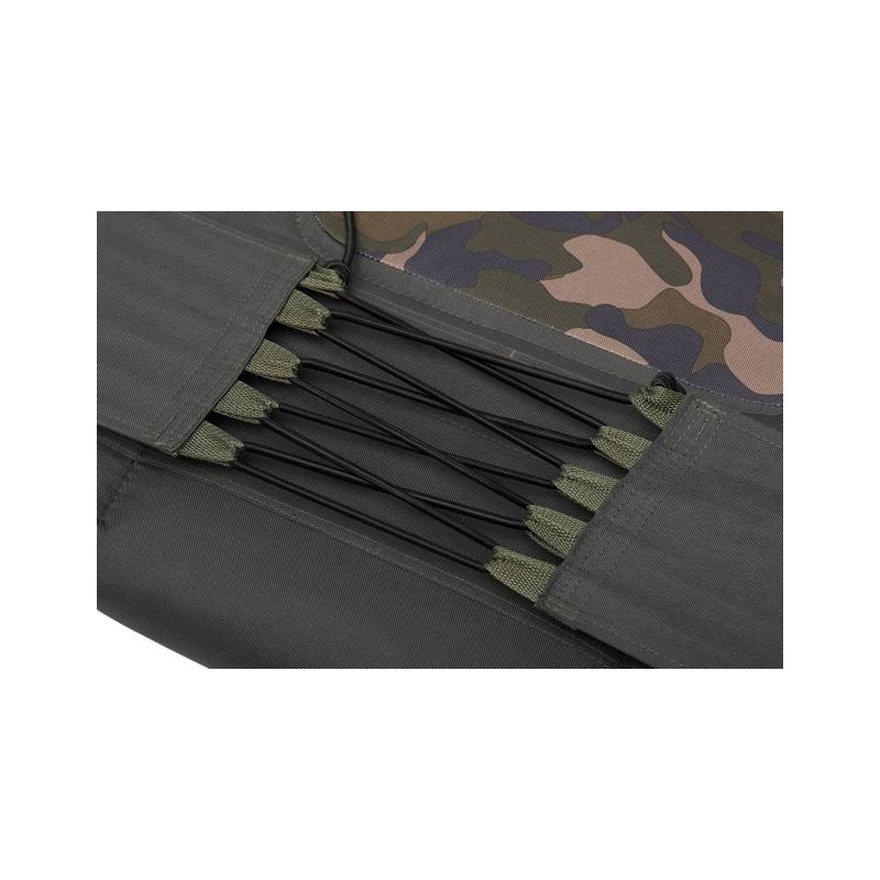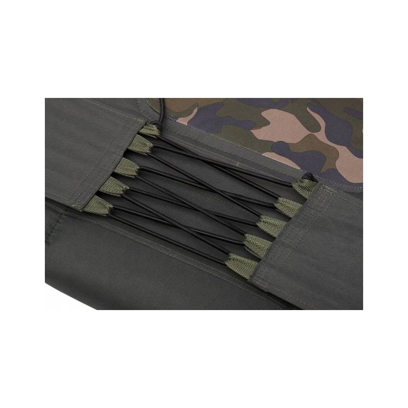 Anatomicznie ukształtowany materac pokryty jest wodoodporną tkaniną 600D w kolorze subtelnej zielni ze wstawkami w stylowym kamuflażu Avenger.