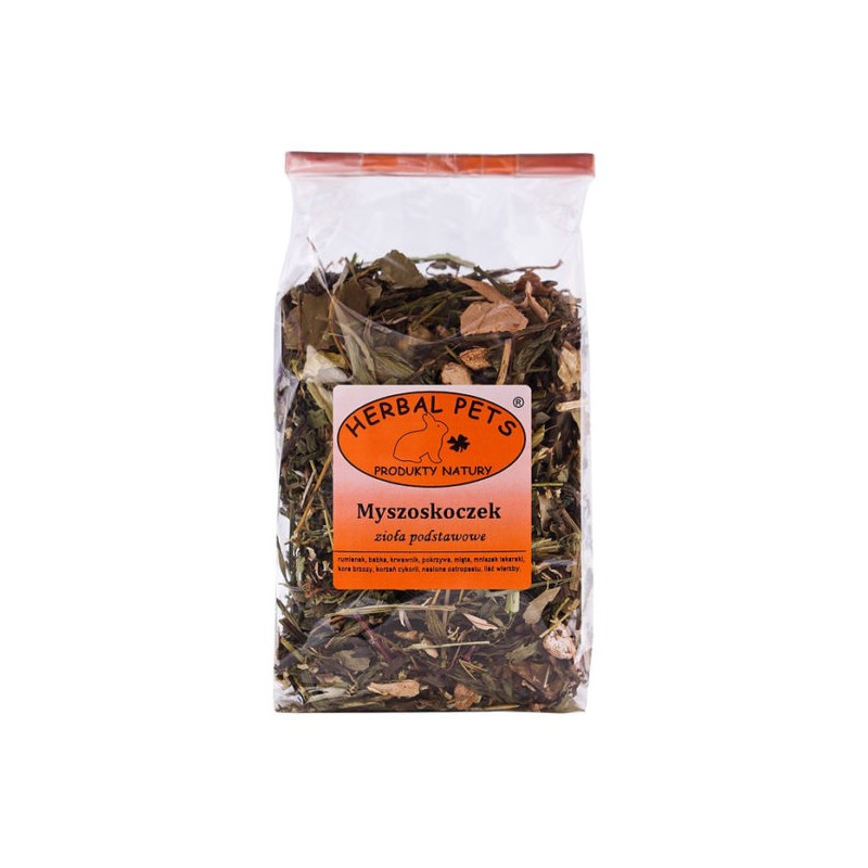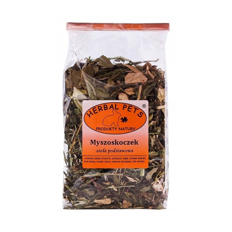 Preparat zawiera wyselekcjonowane, bezpieczne dla myszoskoczków zioła, które w naturze stanowią element ich diety. W skład mieszanki mogą wchodzić między innymi suszone liście maliny, pokrzywy, mniszka lekarskiego czy babki lancetowatej. Są to rośliny cenione za swoje właściwości, dostarczające różnorodnych substancji aktywnych i błonnika.