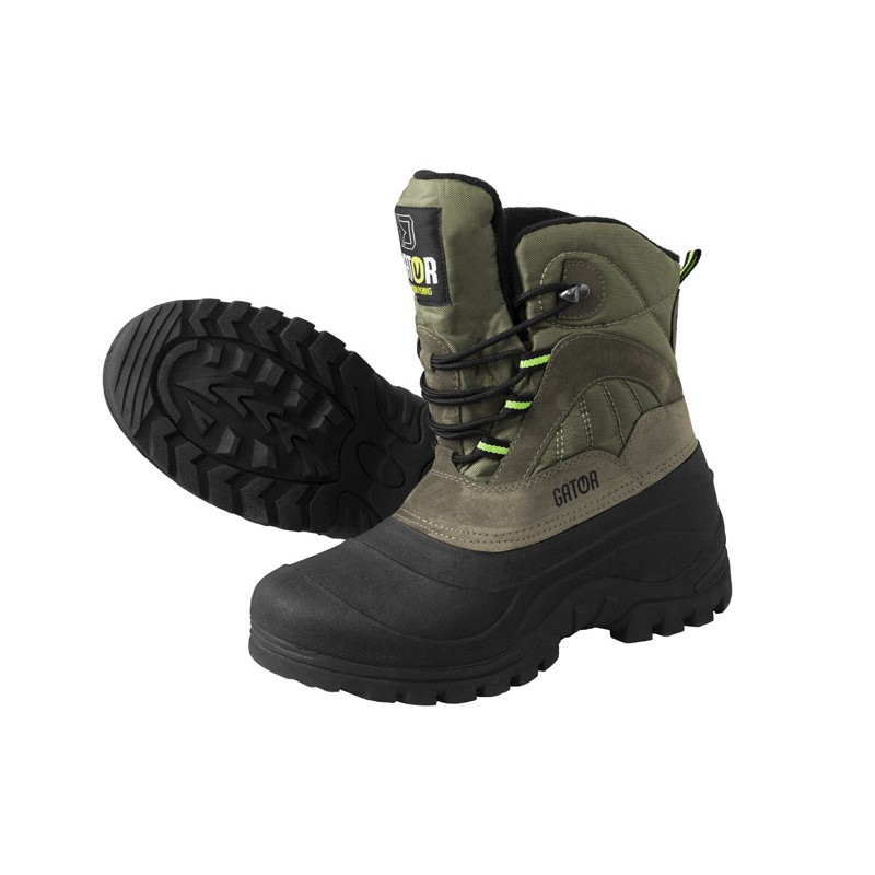Buty Delphin GATOR są przeznaczone do ekstremalnych wypraw, szczególnie w chłodniejszych porach roku. Podniesiona gumowa krawędź podeszwy rozciąga się do wysokości kostek, co oznacza, że chodzenie w moczarach, stopionym śniegu i błocie nie stanowi problemu dla GATOR. Ta gumowa część jest również bardzo łatwa do czyszczenia. Cholewka w tym fasonie to połączenie wytrzymałej tkaniny nylonowej i sztucznej skóry. Materiały te są odporne na złą pogodę i w razie potrzeby można je łatwo impregnować. Język buta jest przyszyty do wysokości 17 cm, co oznacza, że możesz poruszać się przez krótki czas w tak głębokich, wilgotnych miejscach. Sznurowanie jest rozwiązaniem przez oczka tekstylne, u góry sznurowania znajduje się jedno metalowe oko. Wnętrze buta wykonane jest z wygodnego mikropolaru. Komfort termiczny zapewnia warstwa sztucznej mikrofibry między warstwami zewnętrzną i wewnętrzną. Czarno-zielona kombinacja materiałów docenią nie tylko wędkarze, ale także myśliwi, wędrowcy i wszyscy inni miłośnicy przyrody. Mimo solidności buty są bardzo lekkie, co z pewnością przyda się na dłuższy spacer.
