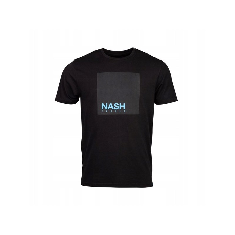 Czarna koszulka z niebieskawym sitodrukowym logo Nash Tackle na piersi i dopasowanym wykończeniem.