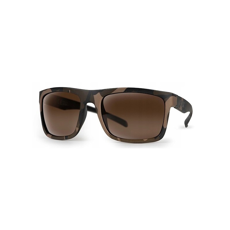 Klasyczne okulary polaryzacyjne w dwukolorowym wydaniu. Na zewnątrz ramka okularów wykończona została w kolorystyce kamuflażu, natomiast wewnętrzna część wykończona jest w czerni. Obszerne, lekko zagięte soczewki o bazie w brązowym kolorze są uniwersalnym wyborem - pozwolą wygodnie spędzać czas nad wodą w warunkach ze zmiennym nasłonecznieniem. Soczewki wyposażone są w filtr ochronny UV 400 oraz posiadają odporność na uderzenia TAC. W komplecie sztywne etui oraz ściereczka z mikrofibry.