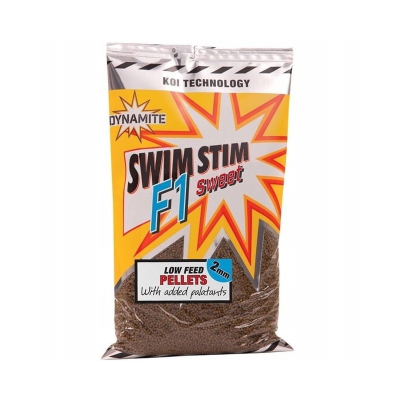 Dynamite Baits Swim Stim F1 Sweetto wysokogatunkowy pellet tworzony na bazie mączek rybnych. Pellet ma mocny, słodki zapach. Świetnie sprawdza się w ciepłych, płytkich zbiornikach. Do stosowania w podajnikach do metody. (Można używać samego pelletu lub łączyć go z zanętą).