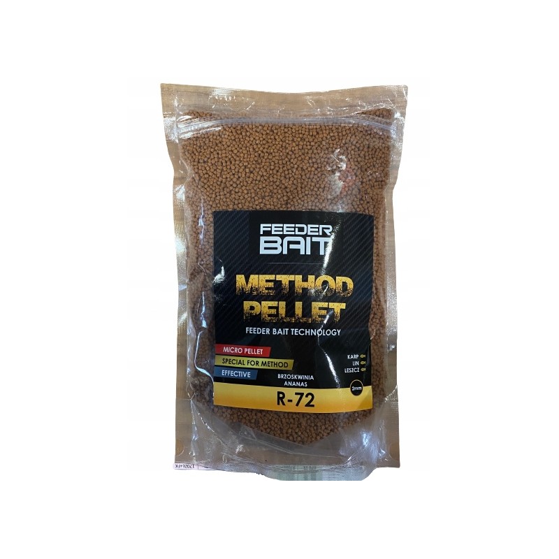 Pellet R72 jest bogaty w takie składniki jak aminokwasy, witaminy i łatwo strawne białka. Dzięki swoim właściwościom Method Pellet bardzo dobrze sprawdzaja się na łowiskach o znacznym zamuleniu dna.