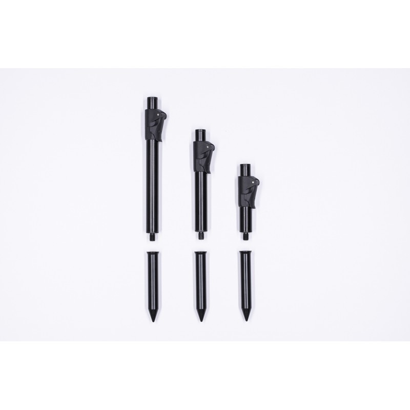 Podpórka dzielona, dzięki której możemy uzyskać pojedynczy zestaw z tradycyjnych buzz barów. Wystarczy rozkręcić podpórki, wkręcić dolną część z ostrzem w pojedynczy, środkowy gwint buzzbara, natomiast górną część podpórek wkręcić w gniazda buzzbara. Otrzymamy dzięki temu stabilną konstrukcję na miękkim podłożu lub w miejscu, gdzie wbicie kilku podpórek obok siebie jest utrudnione przez twarde podłoże. Wykonane z lekkiego, wysokiej klasy aluminium. Dzięki masywnej budowie 16/19mm, uzyskujemy stabilną konstrukcję. Szerokie, długie ostrze pozwala na wbicie jej w większość podłoży. Wykończone w eleganckim, anodyzowanym kolorze czerni. Podpórka występuje w wersji Camlock (regulacja blokady podpórki za pomocą dźwigni) oraz Twistlock (regulacja blokady podpórki za pomocą krzywki)
