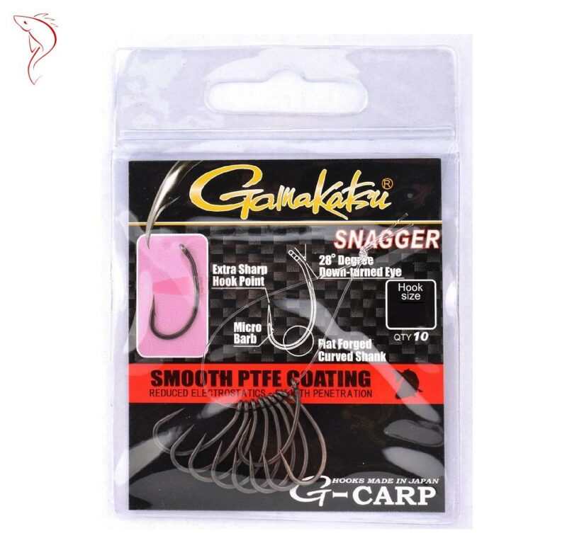 Dzięki 28-stopniowemu, odchylonemu do wnętrza oczku haczyka Snagger, nie ma potrzeby stosowania pozycjonera z rurki silikonowej. Dzięki swojemu kształtowi hak ten obraca się on automatycznie do dolnej wargi karpia i bardzo szybko zaczepia. Haki z mikro zadziorem, który łatwo wychodzi w czasie odczepiania zdobyczy oraz zmniejsza ryzyko uszkodzenia ryb. Specjalny kuty zakrzywiony trzonek cechuje się ogromną mocą i wytrzymałością. Ultra cienkie ostrze zapewnia skuteczne zacięcie. Haki dostępne są również w rozmiarach mniejszych niż 8, umożliwiających stosowanie wyjątkowo finezyjnych metod połowu karpi. Najwyższa jakość Made in Japan!