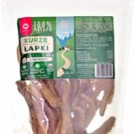 Naturalny Przysmak Dla Psa 100gSuszone kacze łapki s są w 100% naturalne, nie zawierają dodatku sztucznych aromatów, konserwantów i barwników. Kacze łapki są produktem delikatnym o naturalnym zapachu. Dodatkowo pomagają zachować prawidłową higienę jamy ustnej, dostarczają psu wiele zabawy i zaspokoją naturalną potrzebę gryzienia i żucia.