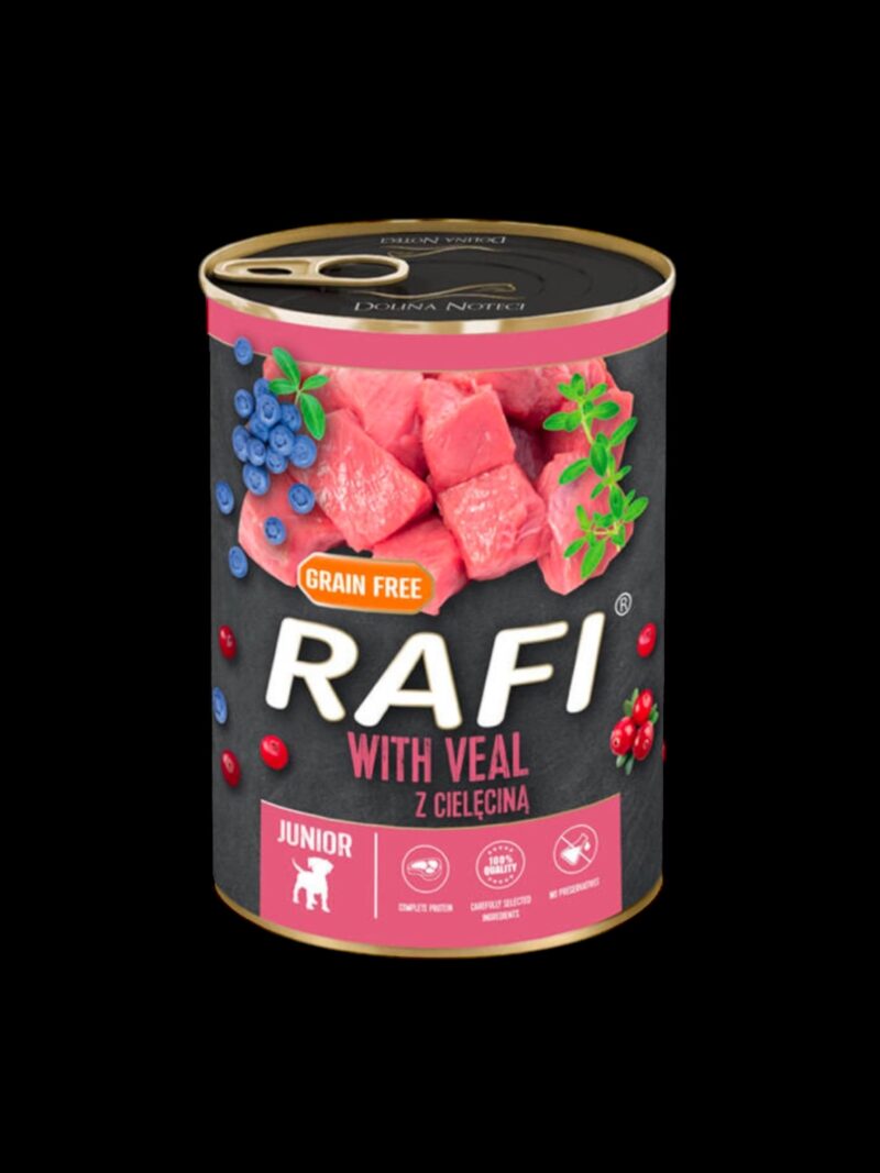 Karma dla psa RAFI JUNIOR z cielęciną ,borówką i żurawiną 400g DOLINA NOTECI