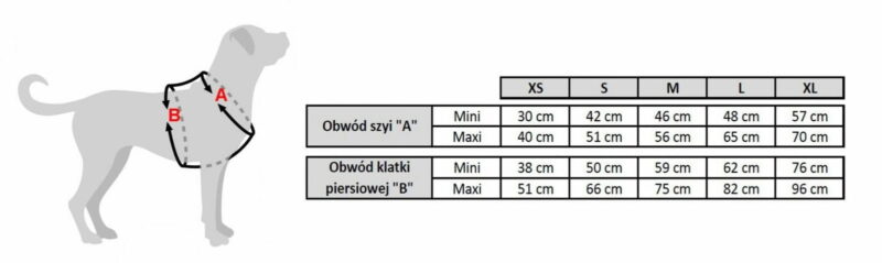 -rozmiar M (obwód szyi: 46 cm – 56 cm, obwód klatki piersiowej: 59 cm – 75 cm)